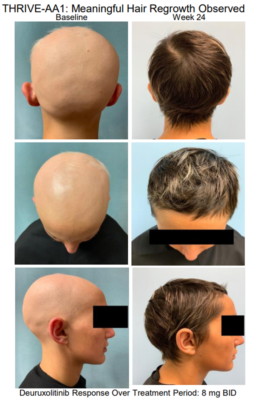 [1] CONCERT PHARMACEUTICALS ANNOUNCES PRESENTATION OF DEURUXOLITINIB THRIVE-AA1 PHASE 3 STUDY RESULTS IN ALOPECIA AREATA DURING WORLD CONGRESS FOR HAIR RESEARCH. Retrieved November 21, 2022, from https://ir.concertpharma.com/news-releases/news-release-details/concert-pharmaceuticals-announces-presentation-deuruxolitinib