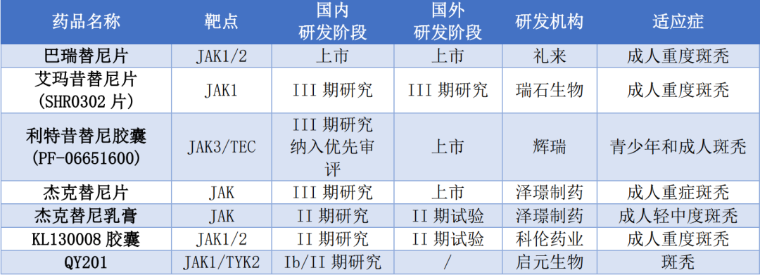 国内JAK抑制剂在斑秃领域的