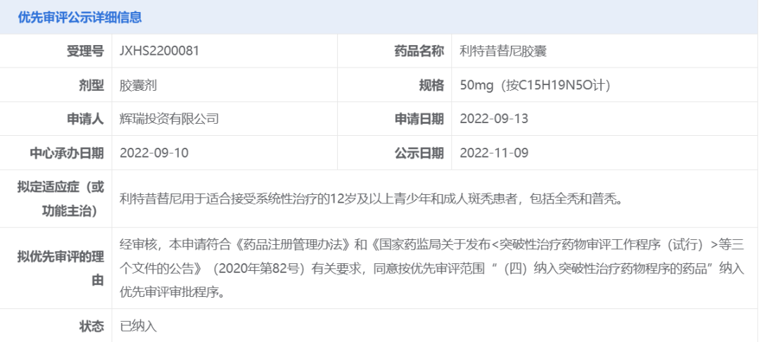 已被NMPA纳入优先审评审批程序(CDE官网)