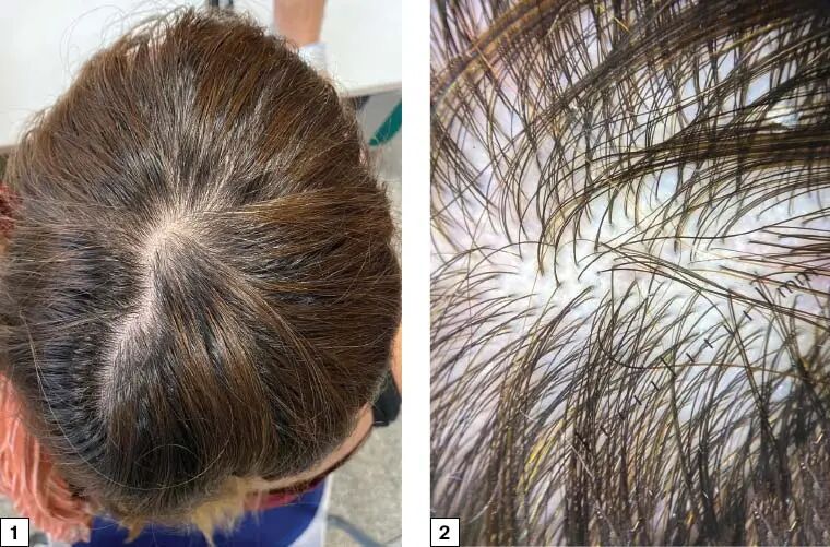 其典型特征是整个头皮上头发均匀地脱落,即脱发为弥漫性,而非局限性。患者通常在淋浴后或梳头时发现发根部头发脱落突然增加,通常每天脱落超过150根。慢性休止期脱发可以持续数年。