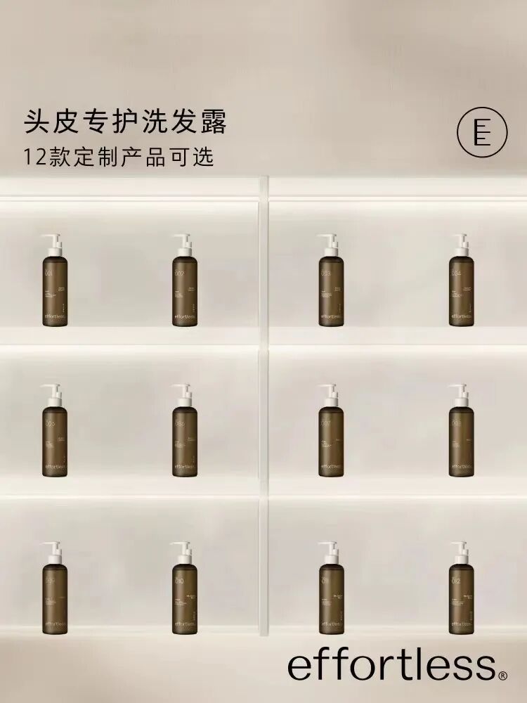 再有像effortless这种定制型洗护产品也很不错,直接用微信小程序让你填调查问卷,根据你所在的城市,判断水质情况,再依照你头皮是干是油,需要改善的问题,来给你推荐合适的产品。