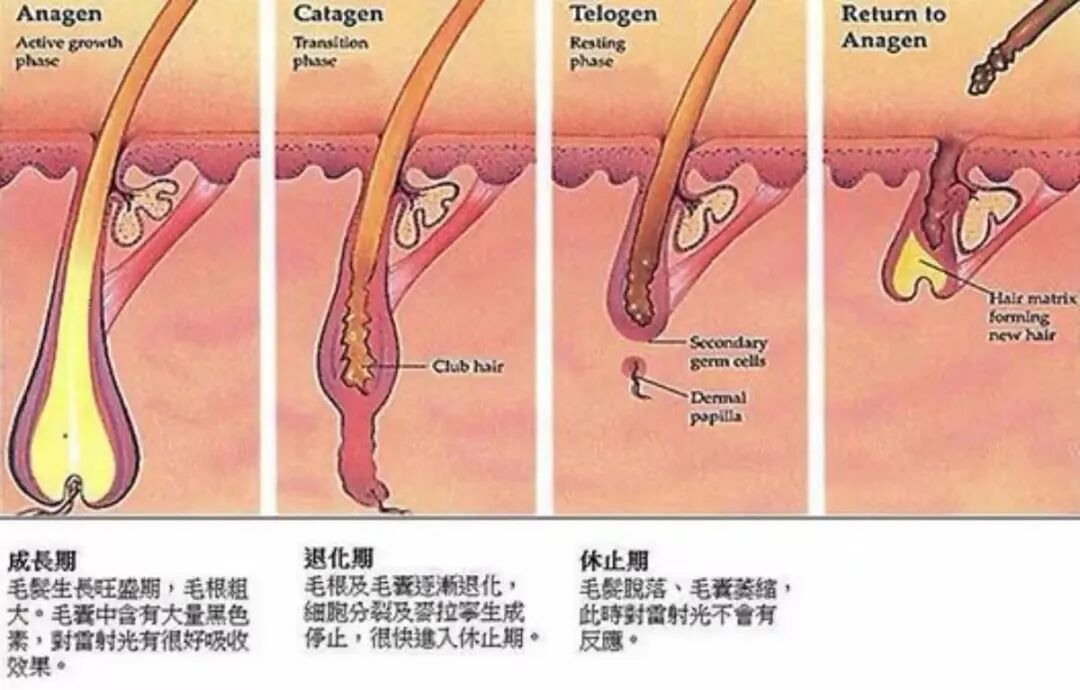 这里顺道插播一个知识——激光脱毛需要反复多次治疗,也是这个原因。