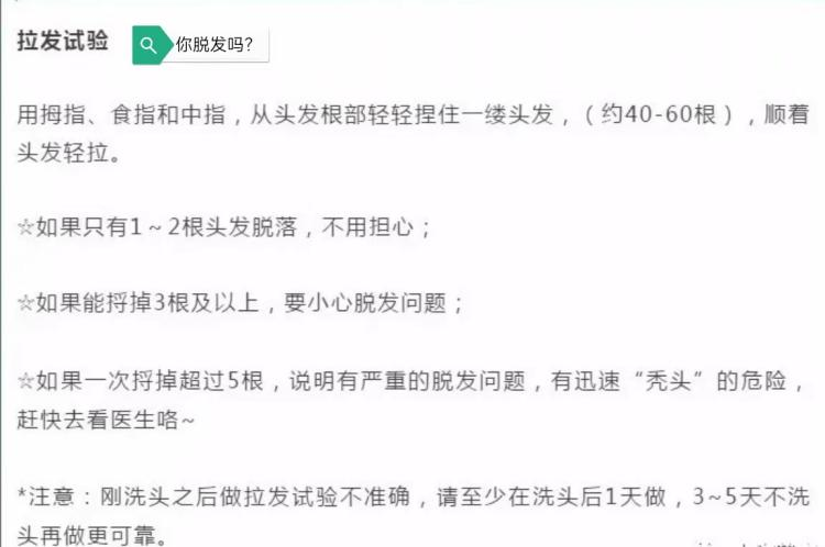 特别提示:刚洗完头做拉法试验不准确,3-5天不洗头再做结果更可靠。