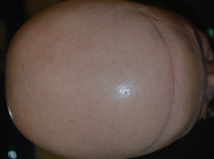 斑秃最常见的是一块头发没有了,任何部位的毛发,包括睫毛、眉毛,大一点的小朋友腋毛、阴毛都可能发生。有时会合并一些指甲的问题,比如:指甲的点状凹陷、纵嵴等。