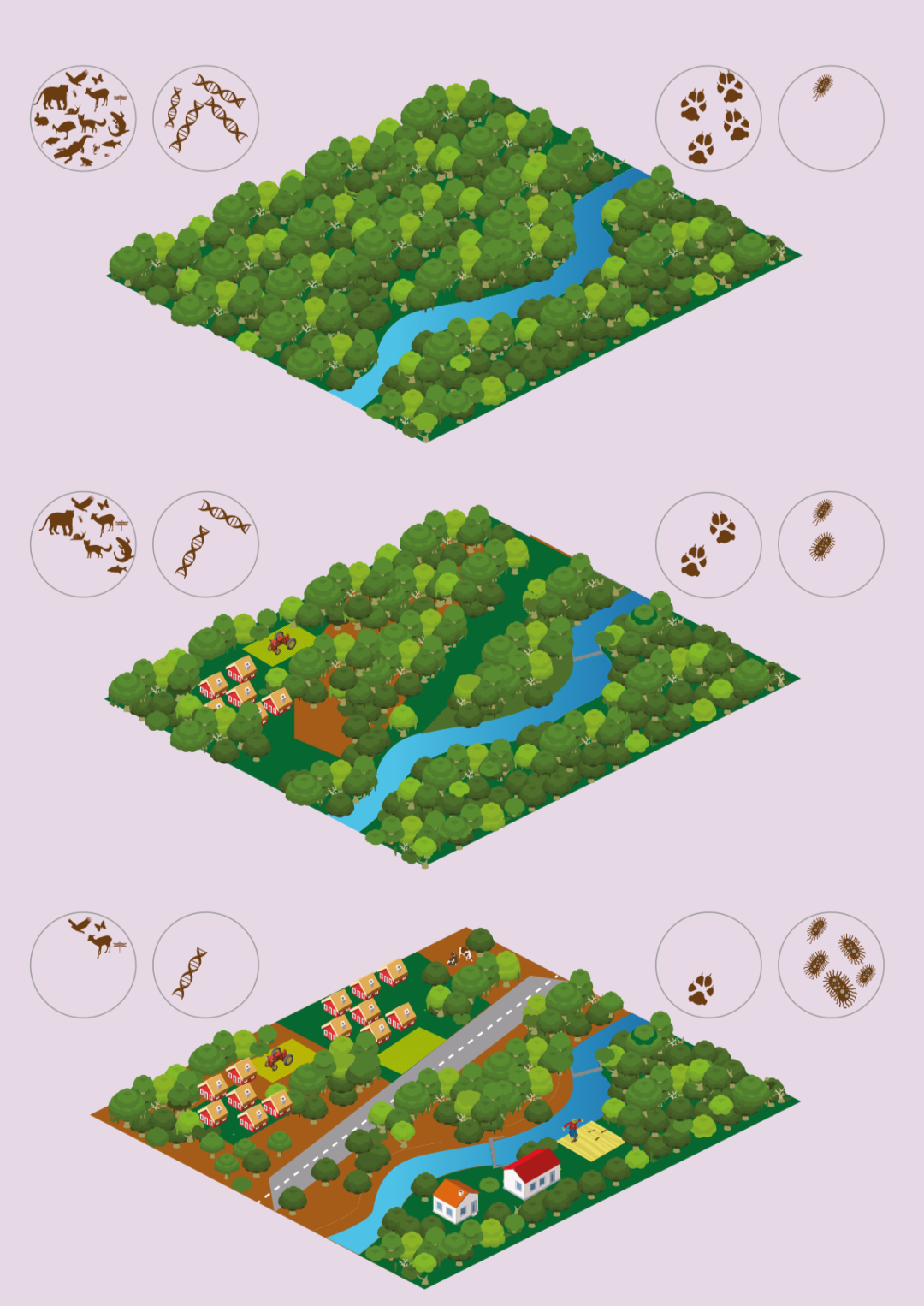 图2 陆地景观破碎化及其相应的生物多样性等演变过程(图片来源:《2018/19前沿报告-全球环境的新兴问题》)