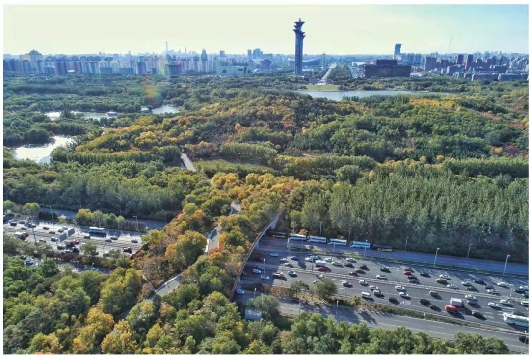 图3 奥林匹克森林公园里跨越高速公路的生态廊道桥(图片来源:浅探奥森生态工法,寻生态演变——THAD6清华大学建筑设计六分院)