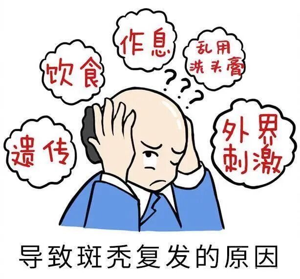 精神因素:大多数学者认为,斑秃是由于忧虑或精神刺激、环境的变化所致。