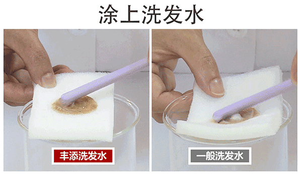 丰添洗发液使用时能感觉到泡沫和头发很快地融合,越来越少,不像大部分洗发水越揉搓泡沫越多,这是因为丰添洗发液不含强碱清洁剂,柔和清洁头皮的同时,能补充营养保护毛囊和皮脂。