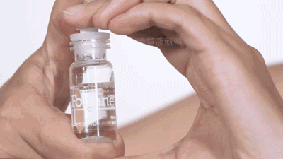 为了保证精华液的活性和新鲜度,精华液采用安瓶无菌包装,把精华粉末和溶剂分开,独立封装在了瓶塞内部。