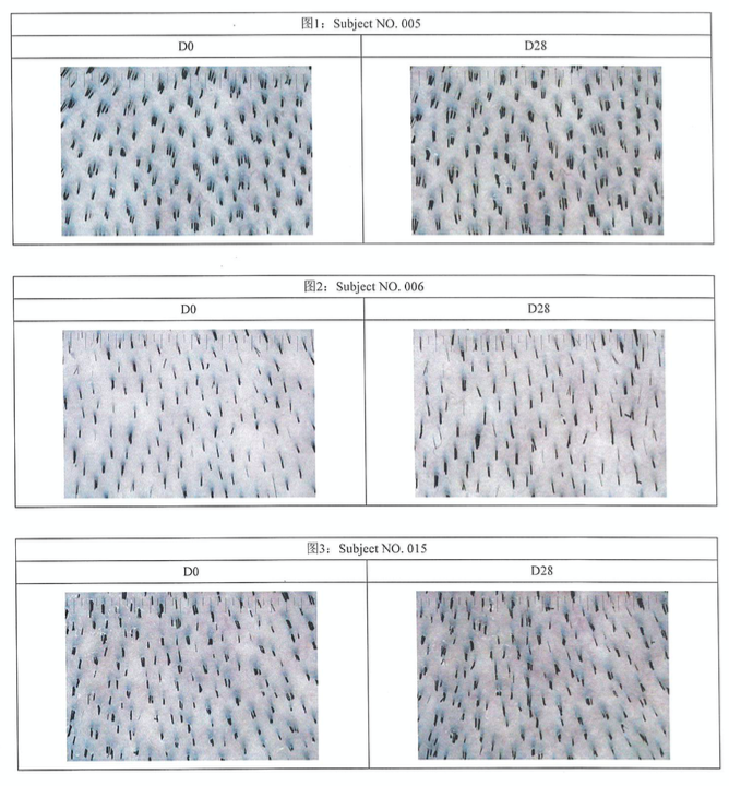 33 名受试者按照早、晚各半支的用量,连续使用 4 周后:毛囊里的头发茬真能看到变化。