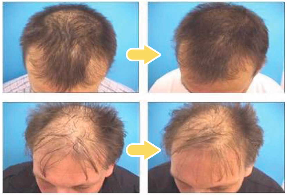 两位受试者使用 16 周前后对比,可以看出头发明显丰盈了一些