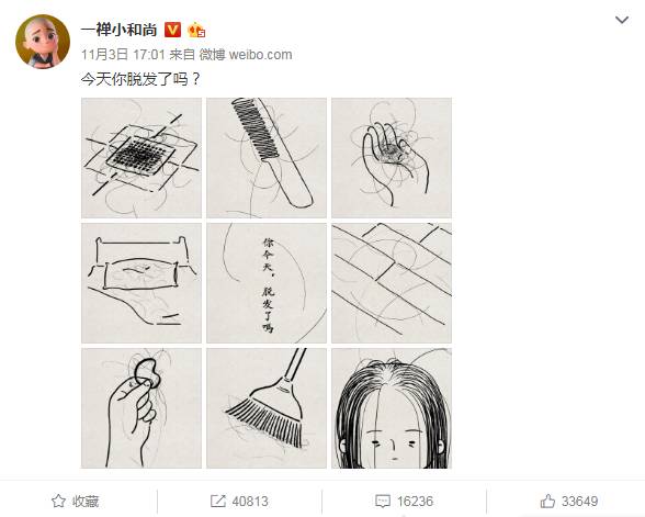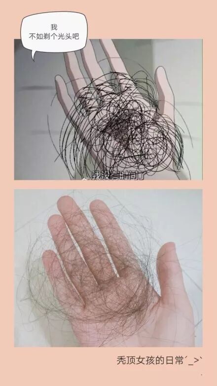 怜几枝:每次看着地上的头发,就心痛。