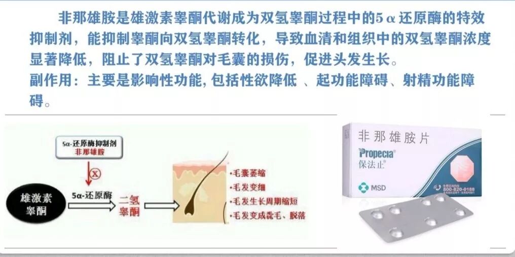 此外,许婧还透露,部分防脱药品会引起男性性功能障碍,应在医生指导下使用。非那雄胺可用于减少雄激素代谢后生成的双氢睾酮对毛囊的损伤,促进头发生长,但它有影响男性性功能的副作用,应在医生指导下使用。