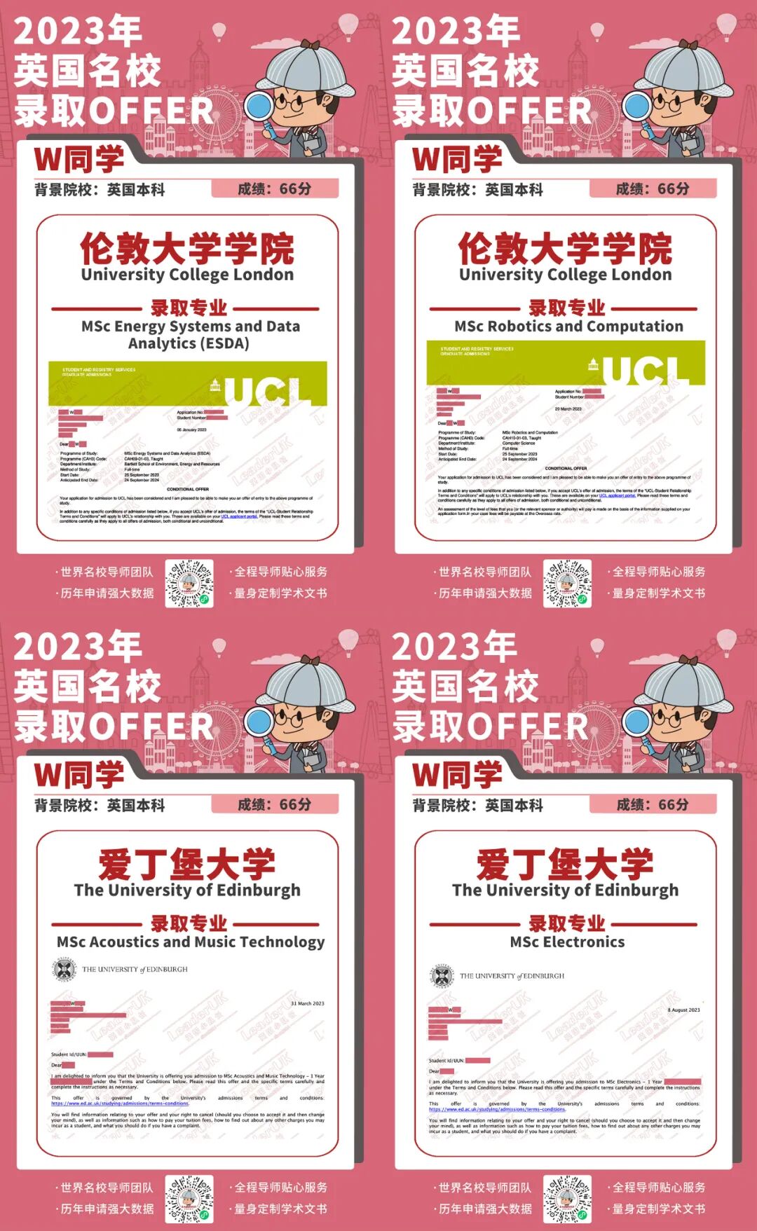 比如下面这位英本66分的W同学,大三课业繁忙,找到队长帮忙规划硕士申请,成功拿到两份UCL、及两份爱丁堡大学offer👇