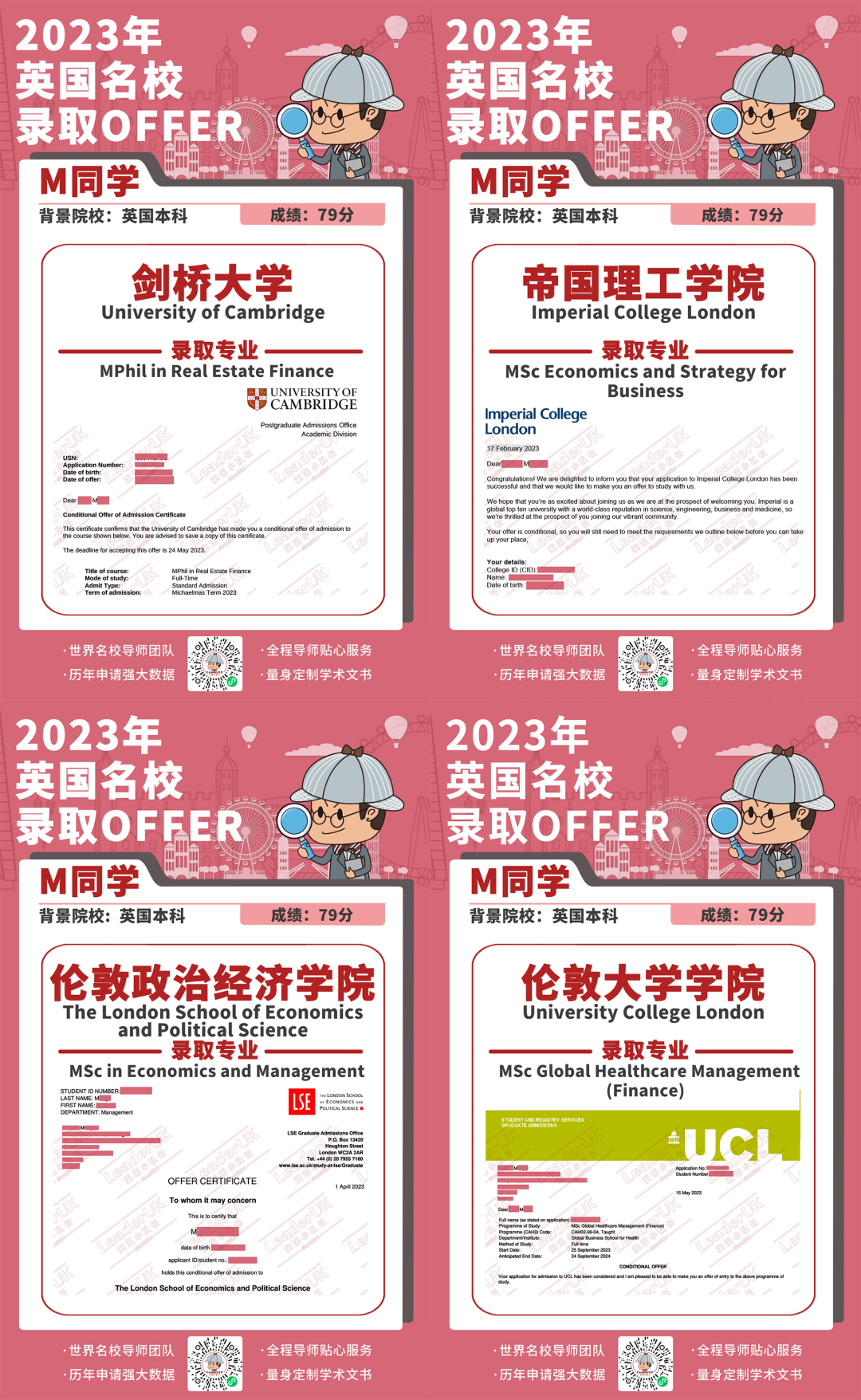 目前,M同学成功收获了剑桥、IC、LSE、UCL的offer!