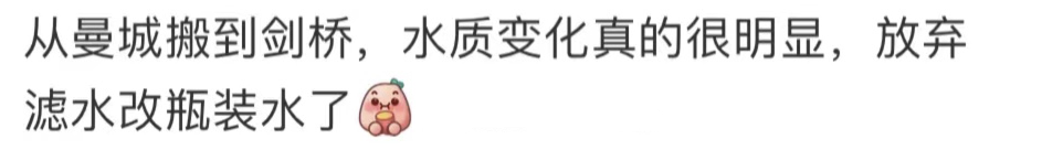 当然,英国也有很多地区提供软水,在这些城市学习和生活的同学对当地水质赞不绝口