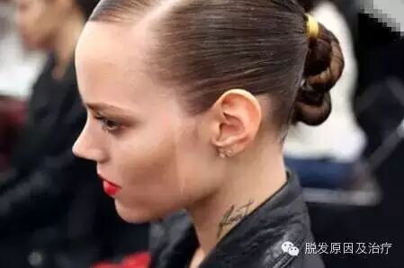 也叫牵引性脱发,是指头发受到了拉力或者摩擦力导致了脱发。举个最简单的例子,有些人喜欢扎马尾辫,而且扎得很紧,常年累月下来,掉发量就会增加,发际线会上移,因为外力导致大量毛囊受到刺激,提前进入休止期。南非有一项调查,当地的妇女为什么脱发太严重,就是她们喜欢留着黑人的地垄沟发型,头发扎得太紧,结果时间一长脱发就明显。