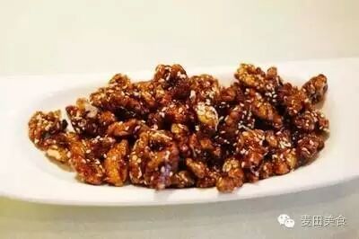 主治:病后体弱,须发早白。配方:淮山药15克,黑芝麻、冰糖各120克,玫瑰糖6克,鲜牛奶200克,粳米60克。用法:将粳米洗净,用清水浸泡1小时,捞出沥干,淮山药切成小颗粒,黑芝麻炒香,将以上三物放入盆中,加水和鲜牛奶拌匀,磨碎后滤出细茸待用,锅中加入清水、冰糖,溶化过滤,烧开后将粳米、山药、芝麻3味的浆汁慢慢倒入锅内,加入玫瑰糖,不断搅拌成糊,熟后起锅即成,可供早晚餐食。3、玻璃核桃仁