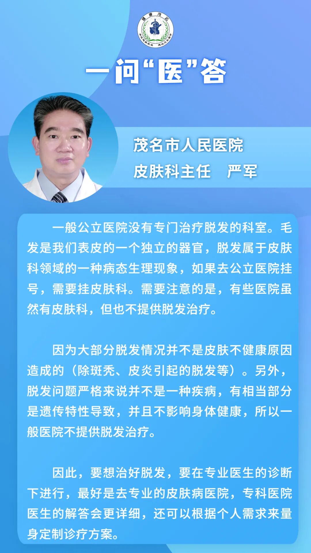 皮肤科主任 严军