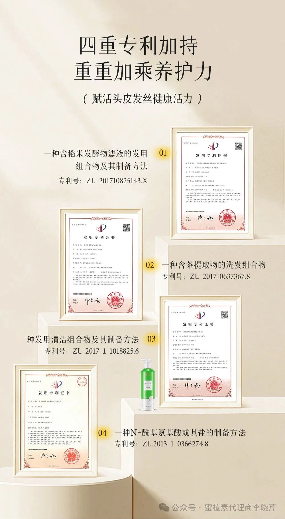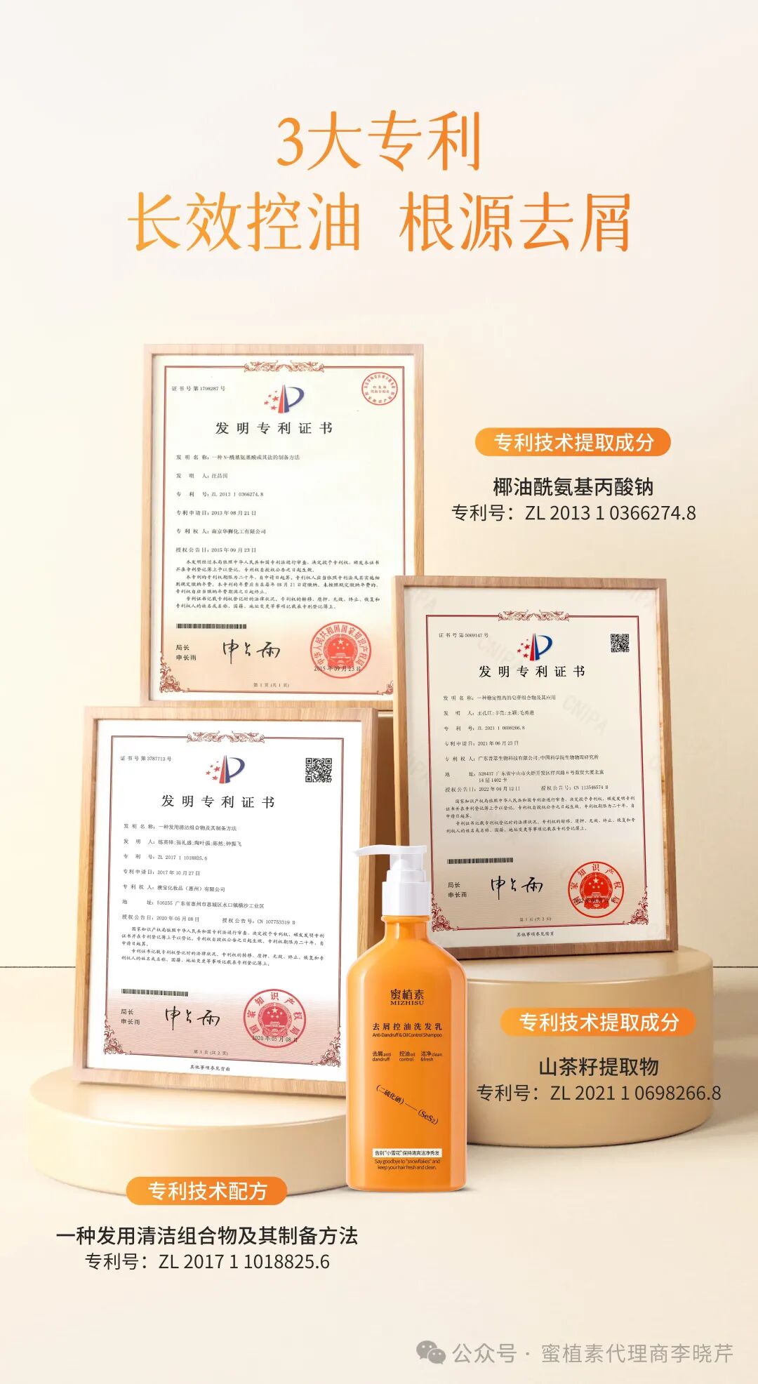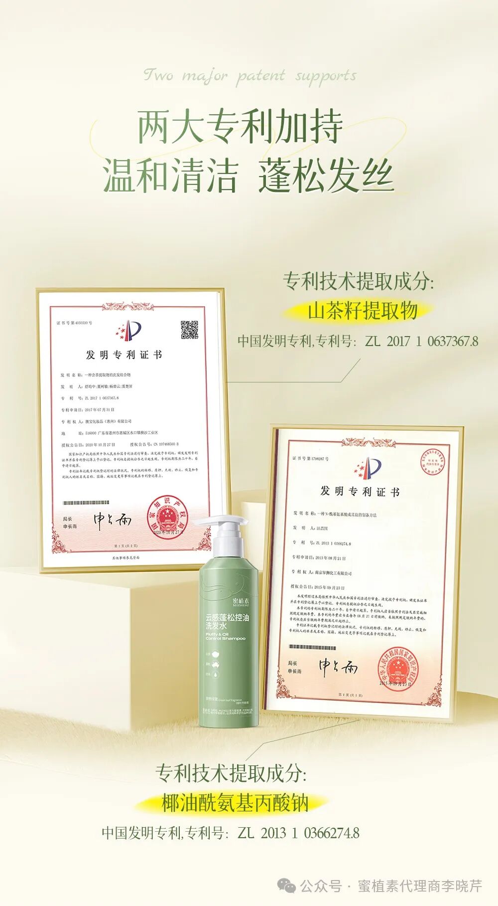 蜜植素三款洗发水,都含有独特的专利技术或成份。