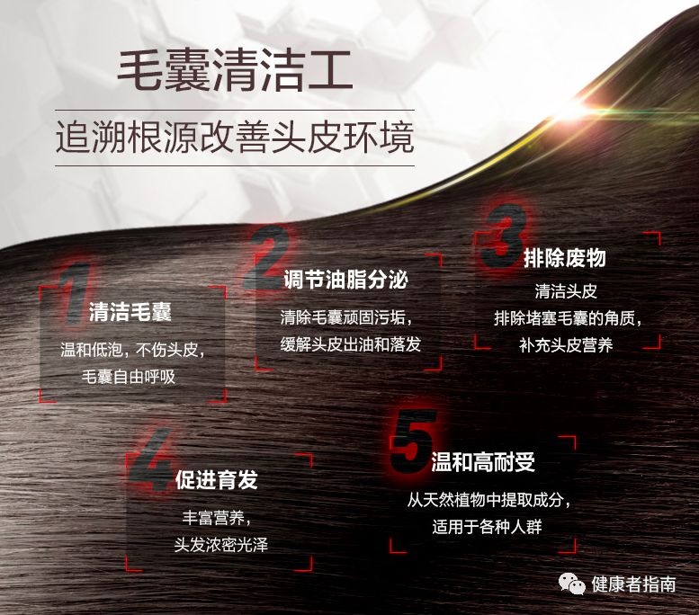 其中的葡萄籽精华,可以使头部皮肤血液循环正常化,促进头皮新陈代谢,活化毛囊组织,有效地防止脱发、白发,刺激新发生长,并可抑制头皮痒,强化发根。