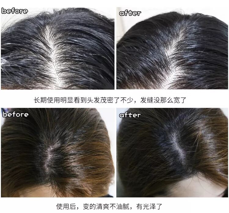 长期使用明显看到头发茂密了不少,发缝没那么宽了。