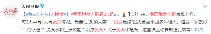 话说,前几天,微博上有个话题我国脱发人群超2.5亿,迅速登上了热搜。