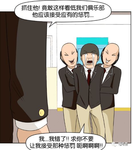 这时候这个男同学,就被这个EGG4给抓了起来!表示这个男同学具有贬低他们的意思!所以应该受到了相应的惩罚!居然还真的把这个男同学给抓了起来!这时候这个小男生含泪哭泣,求饶命!随后他们几个还是不肯放过!然后往这个小男生头顶秃顶的位置上撒这生发粉!