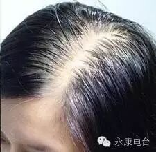 那天我在卫生间里照镜子,猛然看见头顶中央白白的,就让丈夫帮忙看看。陈女士说。丈夫检查后告诉陈女士,白色的是头皮,她的头顶有块区域脱发了。