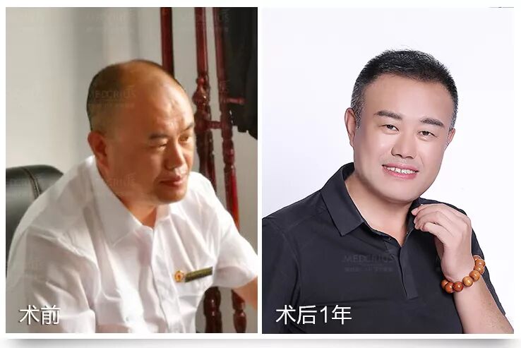 43岁的铁路干部胡浩,植发前后对比效果。