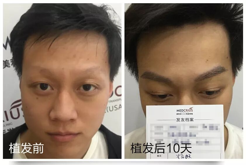 植发前和植发后10天,王飞涵各角度实拍.