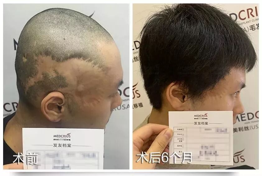 头顶疤痕缺发种植,术后6个月真实效果↑↑