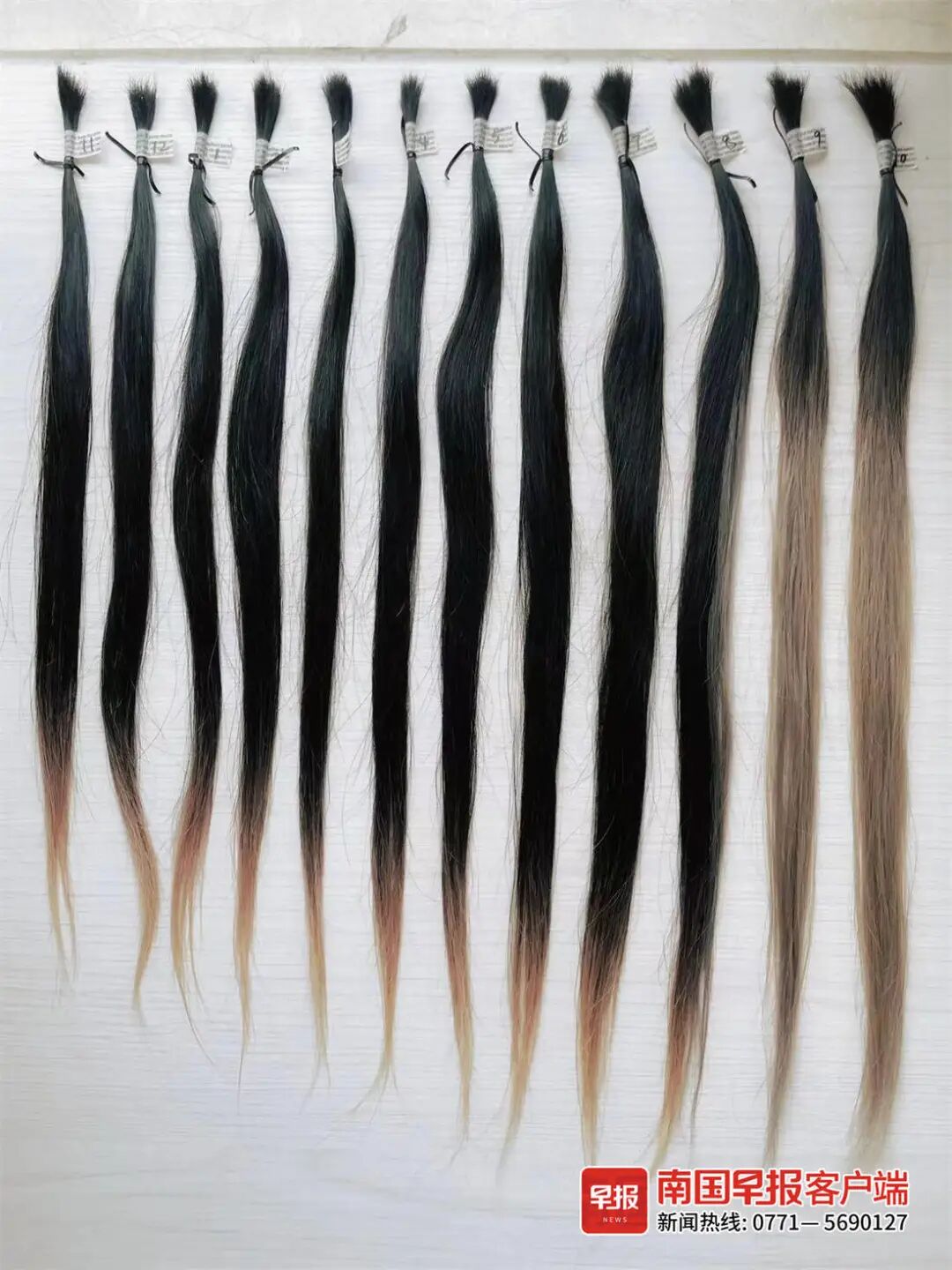 ▲黄女士在一年内收集了自己的12束掉发。