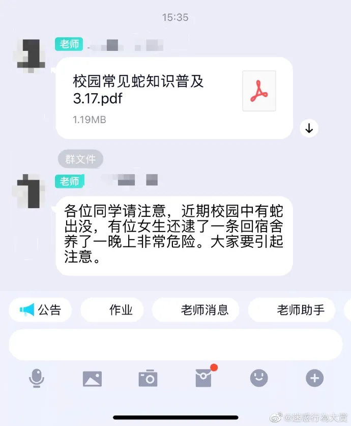 蛇:最近有人在逮我们 晚上出去非常危险,大家要注意!