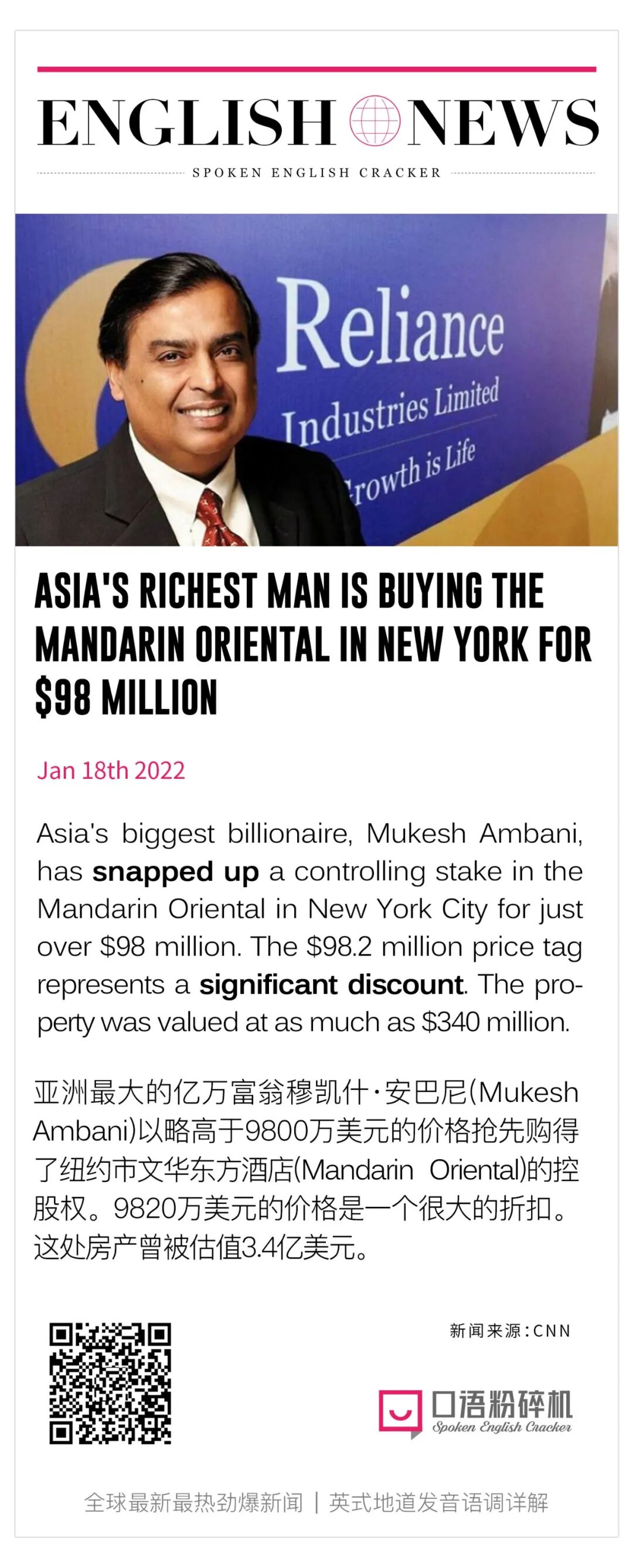 亚洲首富以9800万美元收购纽约文华东方酒店