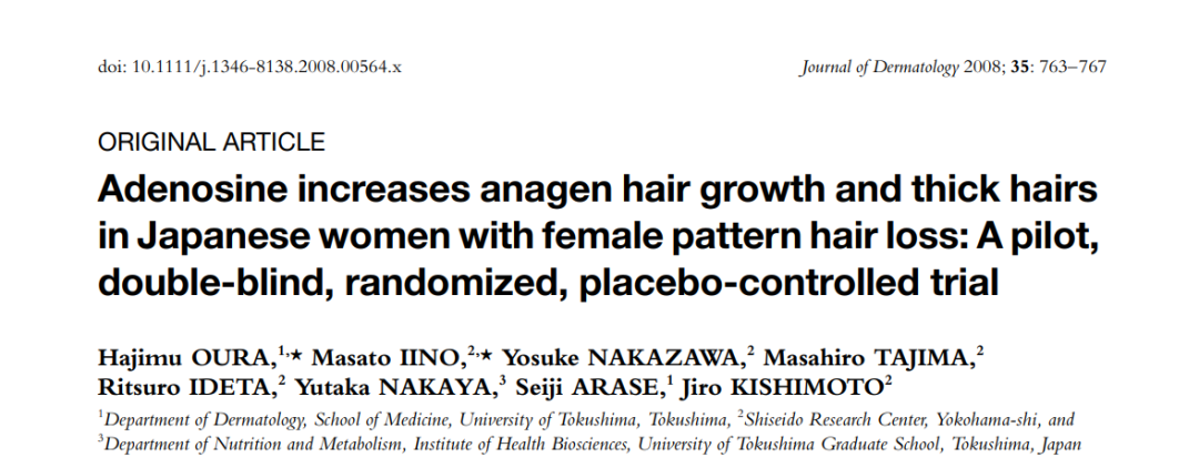 之后,资生堂又分别在3个不同的群体做了临床试验,验证了腺苷确实有着不俗的改善脱发效果,而且浓度只需要0.75%!