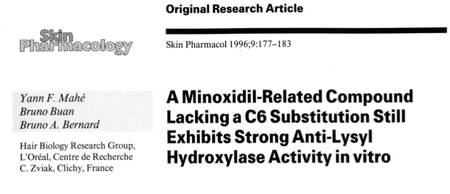 它具有强抗赖氨酸羟化酶活性,根据欧莱雅描述,可以软化毛囊细胞周围的胶原纤维网,焕活毛囊,减少掉发。