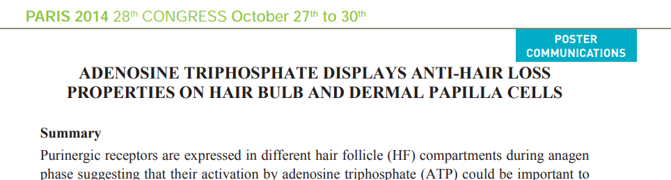 我们先说馥绿德雅,它家的防脱产品有在用ATP帮助防脱育发,虽然言言不推荐用ATP来护肤,但是用它来改善脱发确实可以,根据皮尔法伯在2014年IFSCC上展示的研究,ATP有助于将毛囊维持在生长期,并且还能增强毛囊的锚定。