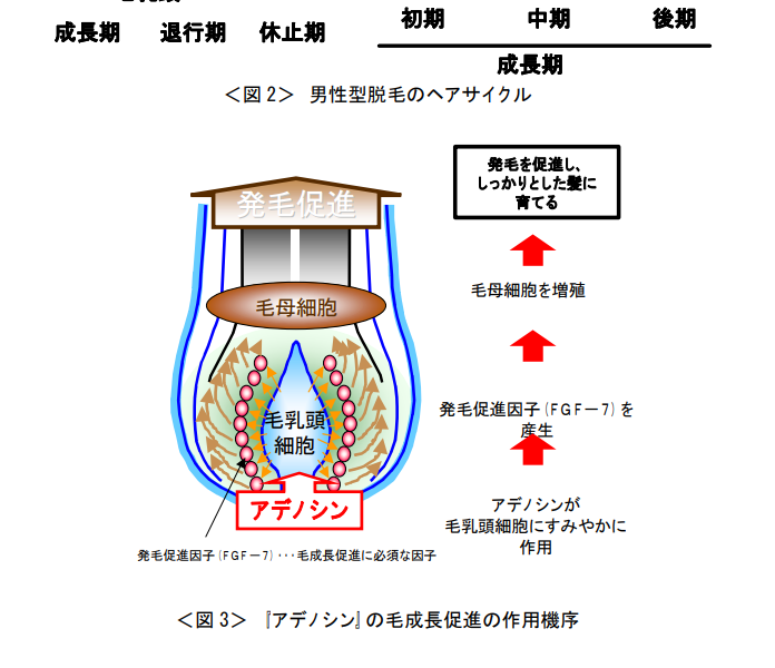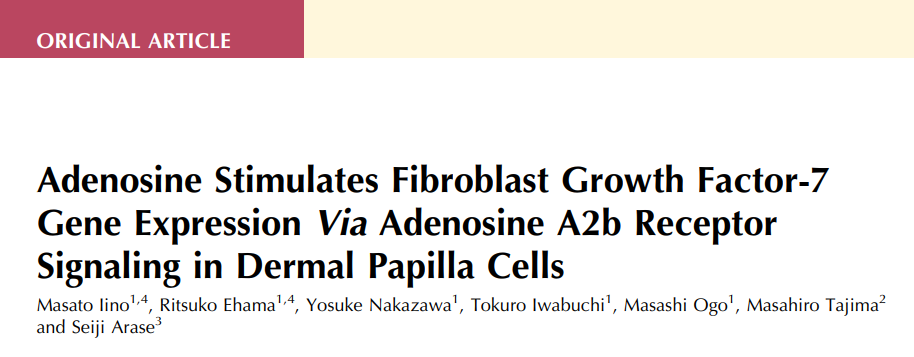 而资生堂在寻找可以增加FGF-7基因表达的成分的过程中发现了腺苷这一人体自身就有的成分,腺苷是人体细胞DNA的组成部分,它能直接作用于真皮乳头细胞表面的受体并促进毛发生长促进因子FGF-7的产生;