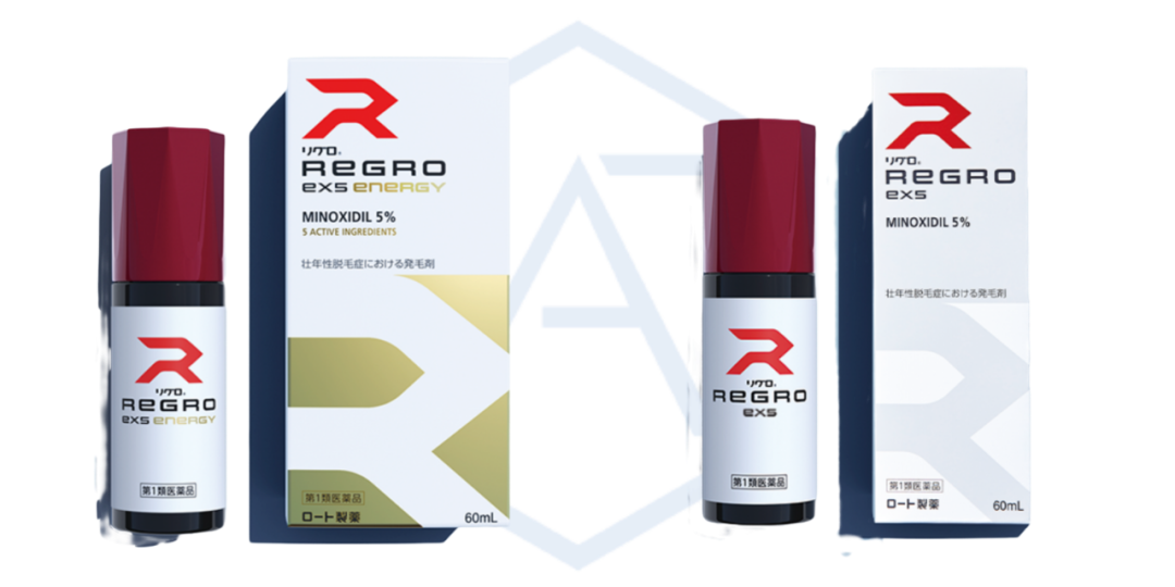 综合以上研究,乐敦在其旗下的品牌REGRO推出了两款含有(5%米诺地尔+酒石酸)的防脱产品。