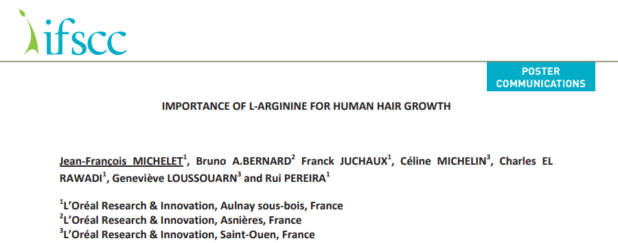 根据欧莱雅在2014年化妆品界最高级的学术会议IFSCC上展示的研究,1.5%精氨酸使用一个半月,可以显著增加处于生长期的头发的密度,减少处于休止期的头发的密度,从而改善脱发。