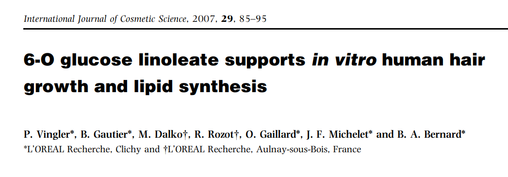 SP94,即红花葡糖苷,它是一种葡萄糖亚油酸酯衍生物(6-O glucose linoleate),很容易被毛囊吸收并代谢成生长过程中所需要的脂质。