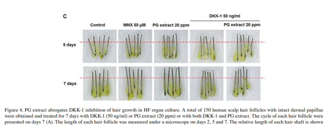 而爱茉莉研究发现,人参提取物还可以拮抗DKK-1诱导的毛囊退行期样变化,显著逆转DKK-1的影响,减少脱发。