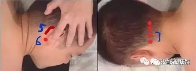 3)、常常头脸部1-7红线处找痛点按揉一下再艾灸,尤其兼有产后头晕头痛的,一定是头部淤堵教严重气血上不了头部,一定要加上疏通头部