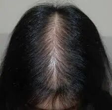 没错,女生也可以出现雄激素性脱发,与男性的谢顶、发际线后移表现不同,女性的雄激素性脱发,表现为全头皮发量弥漫减少、发丝变细、稀疏。