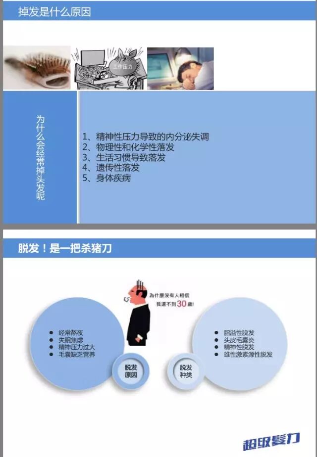 1.身体创伤任何一种身体创伤,包括外科手术、 车祸、严重疾病,甚至是流感,都可能会导致暂时性脱发。这是因为头发有着一定的生长周期:成长阶段、休息阶段和脱落阶段。当你身心压力很大的时候,可能会打乱头发的正常生长周期,使它们停留在脱落阶段的时间变长。通常在经历身体创伤三至六个月之后,脱发会变得越来越明显。怎么办:不必担心,当你身体恢复的同时头发也会开始恢复正常生长。