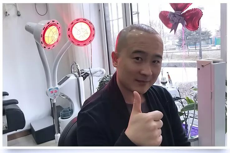 和所有植发朋友一样,植发后的第一天我去美利丝植发拆了纱布,还照了红光,来促进毛囊提取区的恢复。红光照射时,会有一种热热的、但很舒服的感觉。