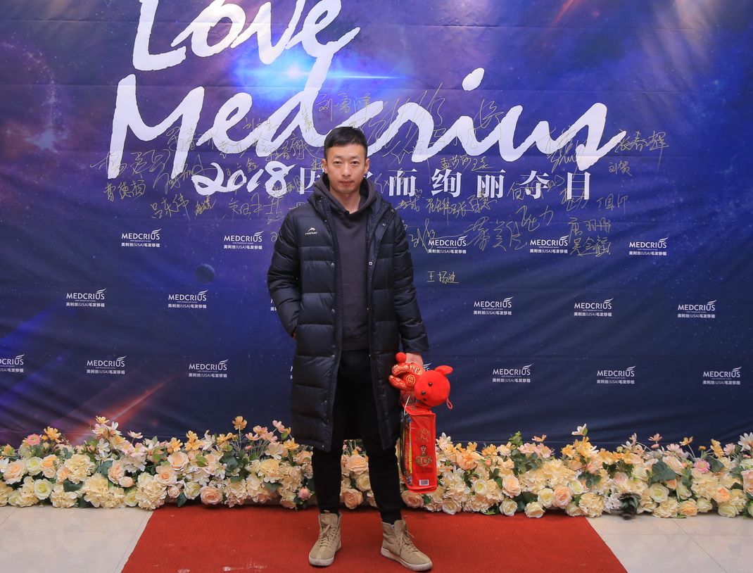 2018年11月18日,植发2年整参加美利丝植品牌嘉年华,与书法大咖孙国辉合影