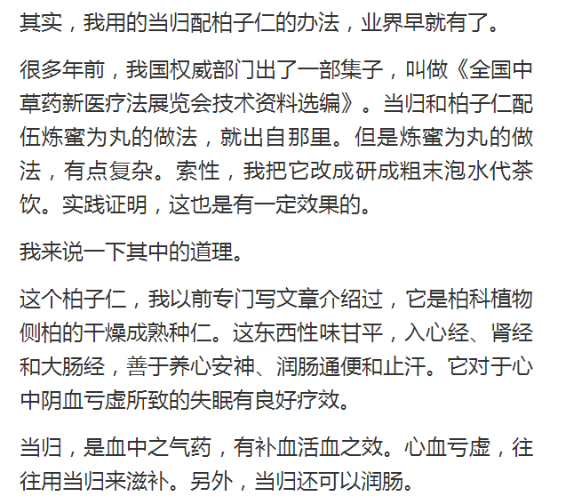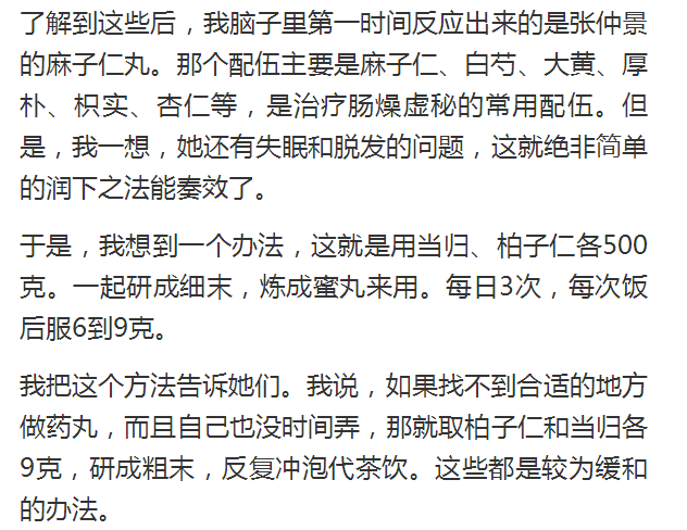 是什么呢?你记住,当归配上柏子仁。具体方法很简单——