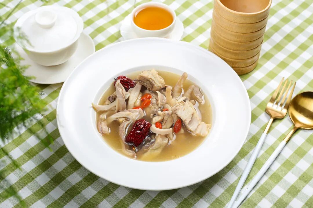 【做法】先将五指毛桃、炒薏米浸泡30分钟,去杂质,备用;把鸡剁成块,焯水后再冲洗干净;将所有材料放入汤锅,加水10碗,大火烧开后改小火煮1.5 小时,煮好后加入适量盐调味即可。